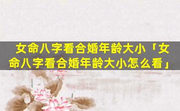 女命 🦆 八 🐞 字看合婚年龄大 🐠 小