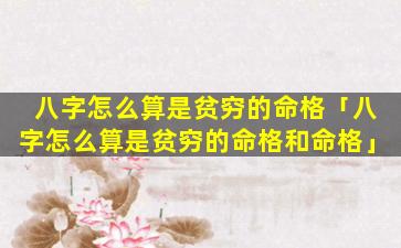 4、八字怎么 🐅 算是贫 🐞 穷的命格呢