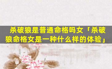1、杀破狼 🐴 是普通 🍀 命格吗女