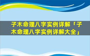 子 🕸 水 🐡 命理八字实 🦈 例详解大全