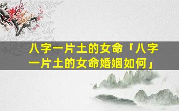 命理学中,“八字一片土 🍀 ”的,女性婚姻状况受具体命局组合的影响难 🐘 以一概而论以。下是一些可能的情况: