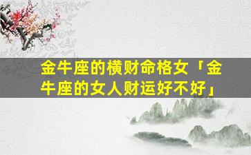 金牛座 🐶 横财命格女孩的特 🕷 点