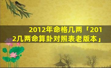 2012年几两 🐴 几钱 🦉 算命 🐠 法