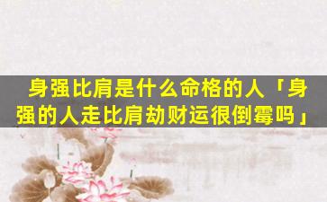 2、身强的人走比肩劫 🐒 财运很倒霉吗