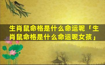 1、生 🌷 肖鼠命格 🌹 是什么命运呢