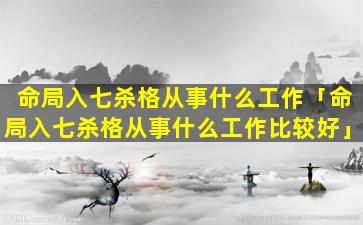 3、命局入七杀格从事 🕷 什么 🌿 工作好