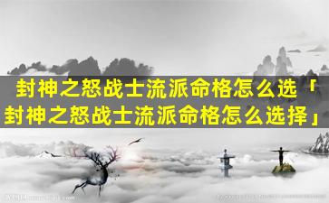 1、封神之怒战士流派命格 🌷 怎么选