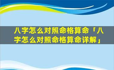 八字对 🌵 照命格算命 🌲 详解 🐅