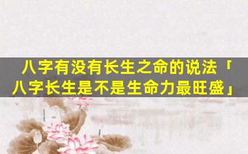 1、八字 🍁 有没有长生之命的 🐒 说法
