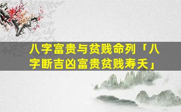 2、八字 🦈 断吉凶富贵贫贱寿夭