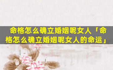 2、命 🐡 格怎么确立婚姻呢女人的命运