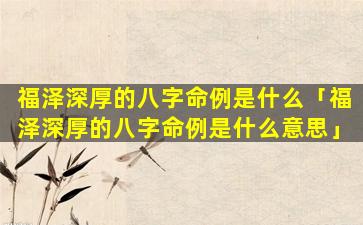 2、福泽深 🦟 厚 🐳 的八字命例是什么意思