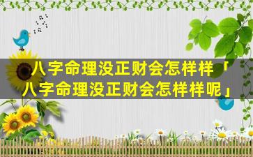 2、八字命理 🌲 没正财会怎样样呢