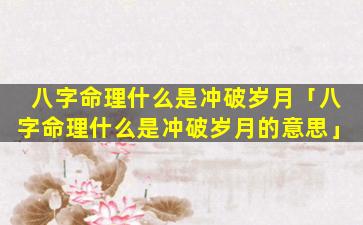 2、八字 🐧 命理什么是冲破岁月的意思 🕊