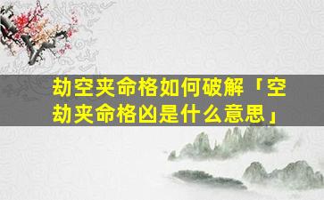 2、空劫夹命格 🐼 凶是 🦆 什么意思