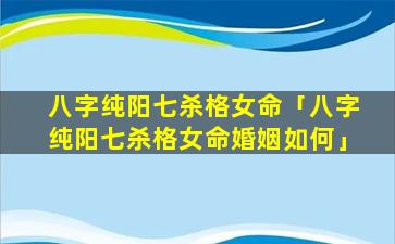 八字纯阳 🐼 七 🐈 杀格女命婚姻