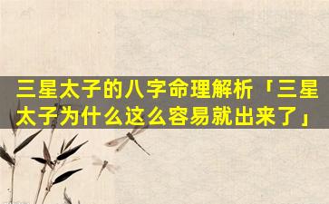 三星太子的八字为伤官格,其,本,人聪慧过 🐋 人才华出 🐛 众事业上容易取得成就。但,需,要。注意感情运势 🦅 坎坷婚姻不顺以及与人际关系的处理