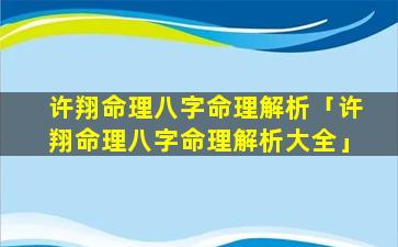 许翔 🦋 命理八字命理解析视 🐬 频 🌴