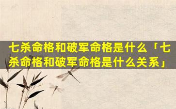 2、七杀命格 🌿 和破军命格是什么关系