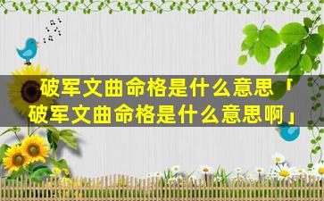 2、破军文曲命格 🌺 是 🌾 什么意思啊