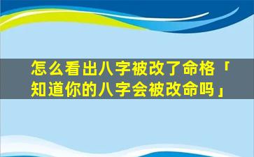 2、知道你的八字会被改命 🕊 吗?
