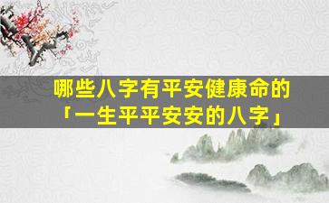 1、哪些八字 🐝 有平安健康命 🦍 的