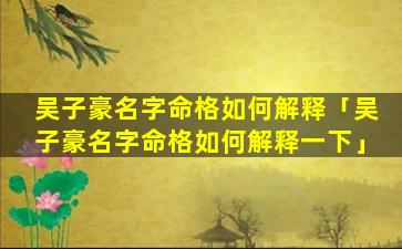 4、吴 🌺 子 🌻 豪名字的含义是什么