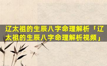 2、辽太祖的生辰八字 🌴 命理解析视频