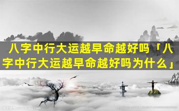 2、八字中行大运越早命越 🍀 好吗 🦅 为什么