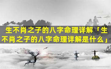 3、生不肖之子的八字 🐈 命理详解 🦊 视频