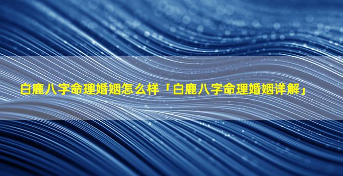 1、白鹿八字命 🌺 理婚 🦁 姻怎么样