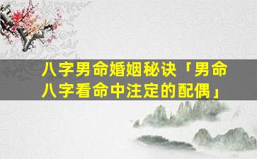 八字 🌵 男命婚姻秘诀 🐧
