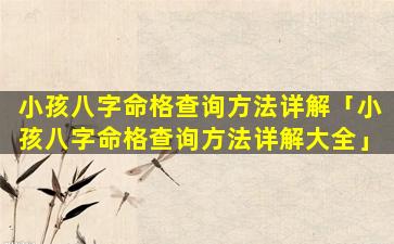 3、小孩 🐘 八字命格查询方法详解图 🐯