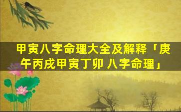 甲 🐎 寅八字 🕊 命 🦍 理大全