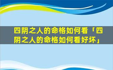 四阴 🦍 之人的 🦄 命格 🐶 运势