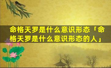 命格天罗并不 🦄 是一 🐞 种意识形态。