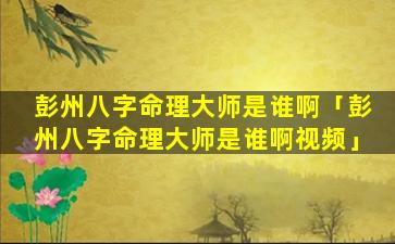 1、彭州八 🌺 字命理大师是 🕊 谁啊