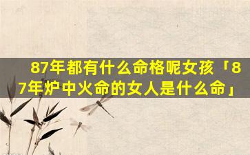 1、87年都 🐒 有什 🌼 么命格呢女孩