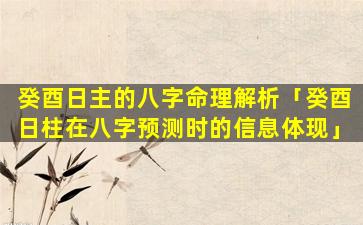 2、癸酉日柱在八 🍀 字预测时的信息体现