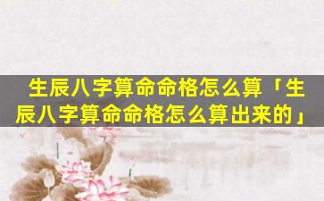 生 🕊 辰八字算 🌾 命命 🐟 格的计算方法