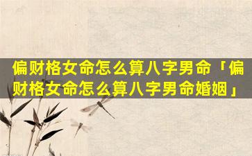 3、偏财格女命怎 🐋 么算八字男 🐠 命的