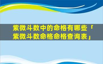 紫微斗数命 🌴 格 🌵 命格查询表