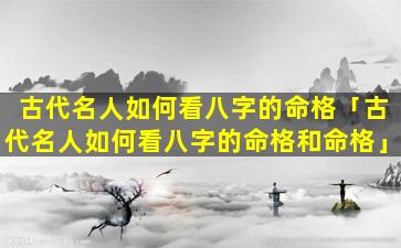 古代名人对 🌸 八字 🐱 命格的看法 🐘