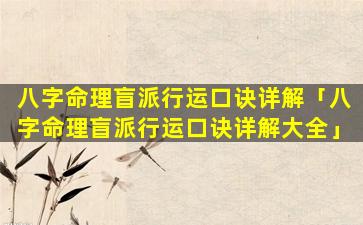 八字命理盲派行运 🐟 口诀详解大 🪴 全