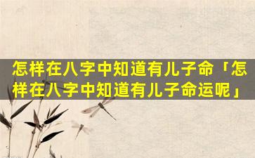 3、怎样在八字中知道有 🌹 儿 🐛 子命理