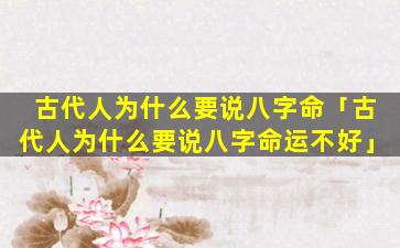 2、古代人为 🐎 什么要说八字 🐅 命运不好