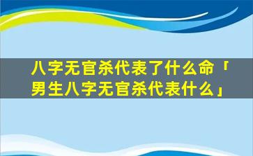 1、八字 🐳 无官杀代表了 🐛 什么命