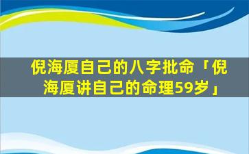 2、倪 🌺 海厦 🐈 讲自己的命理59岁