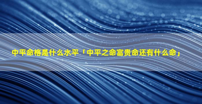 “中平之命”在 🦋 八字命 🦍 理中,一,般,指八字,五行平衡阴阳和顺命局无明显缺陷但也不见明显贵气的一种命格。