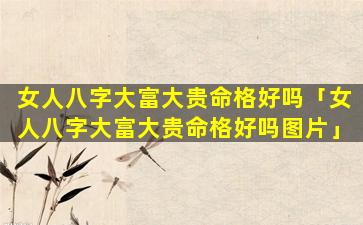 1、女人八字大富大贵命格 🦅 好吗 🐋